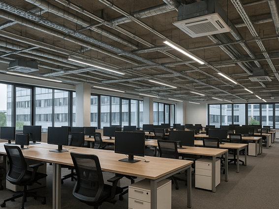 天井裏をあえて見せることで、オフィスに開放感を与え、洗練された印象を演出できます。モダンでスタイリッシュな空間をつくるのに適しています。