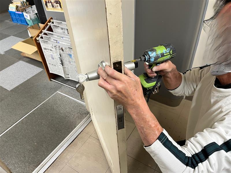 今回は開閉時の引っ掛かりや鍵の締まりが悪い症状が出てきたため、ドアノブを交換することになりました。